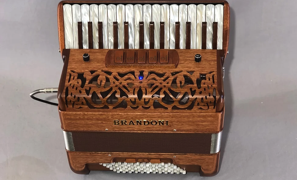 Este sistema possui a versatilidade de se adaptar a acordeões de qualquer tamanho, 8 a 120 baixos, piano ou de botão, com cassoto ou polifônico. O AC5001-HQ não necessita de nenhum circuito externo para funcionamento sendo necessário apenas um cabo P10 mono (Saída stereo sob demanda.). Não requer phantom power. Basta plugar e tocar!