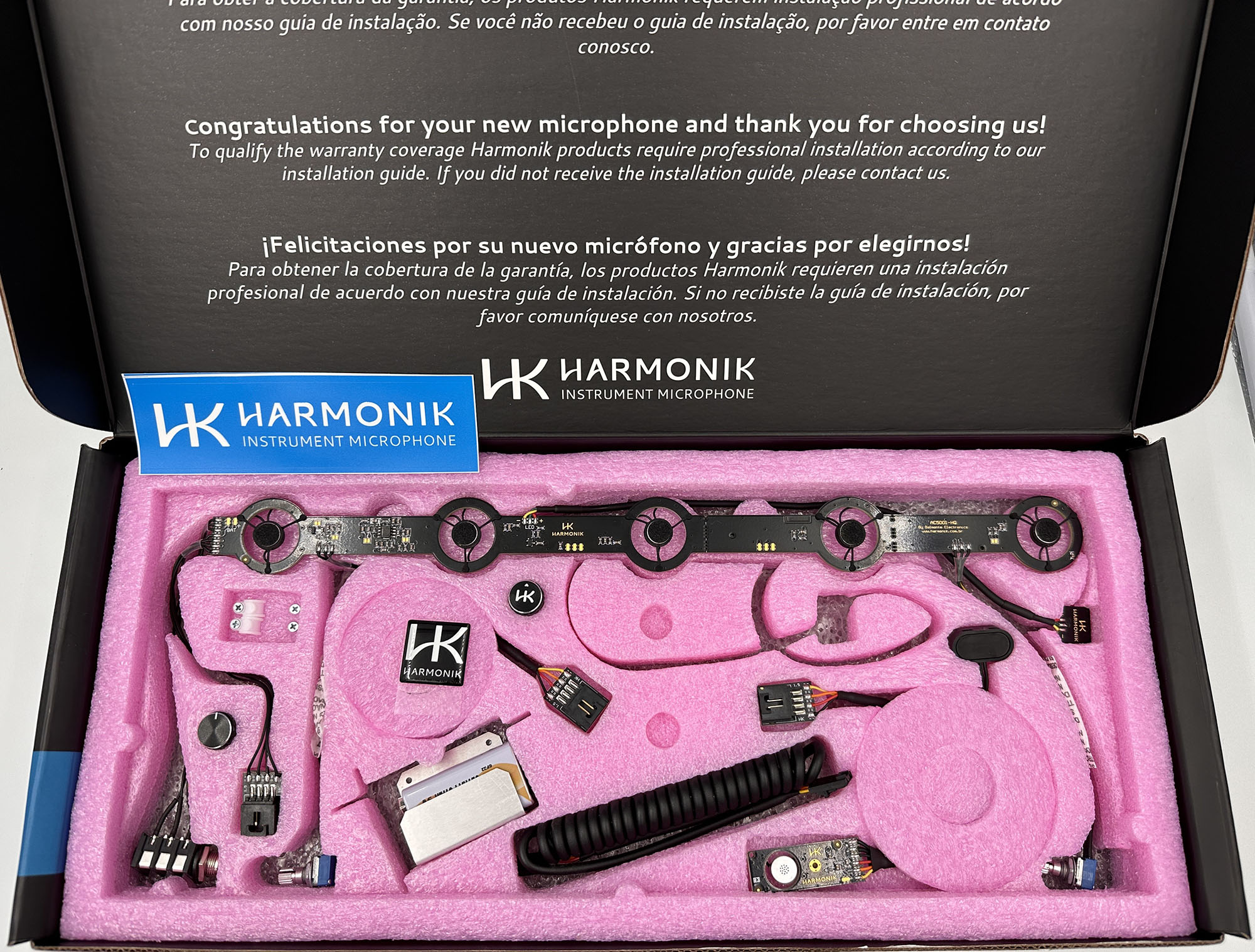 Preocupada com a facilidade na instalação, o AC5001-HQ acompanha cabos e adaptadores de fácil manuseio, alem do seu layout intuitivo. Nos sistemas da Harmonik não é necessário abafar a tampa do acordeon, preservando o som acústico do instrumento.