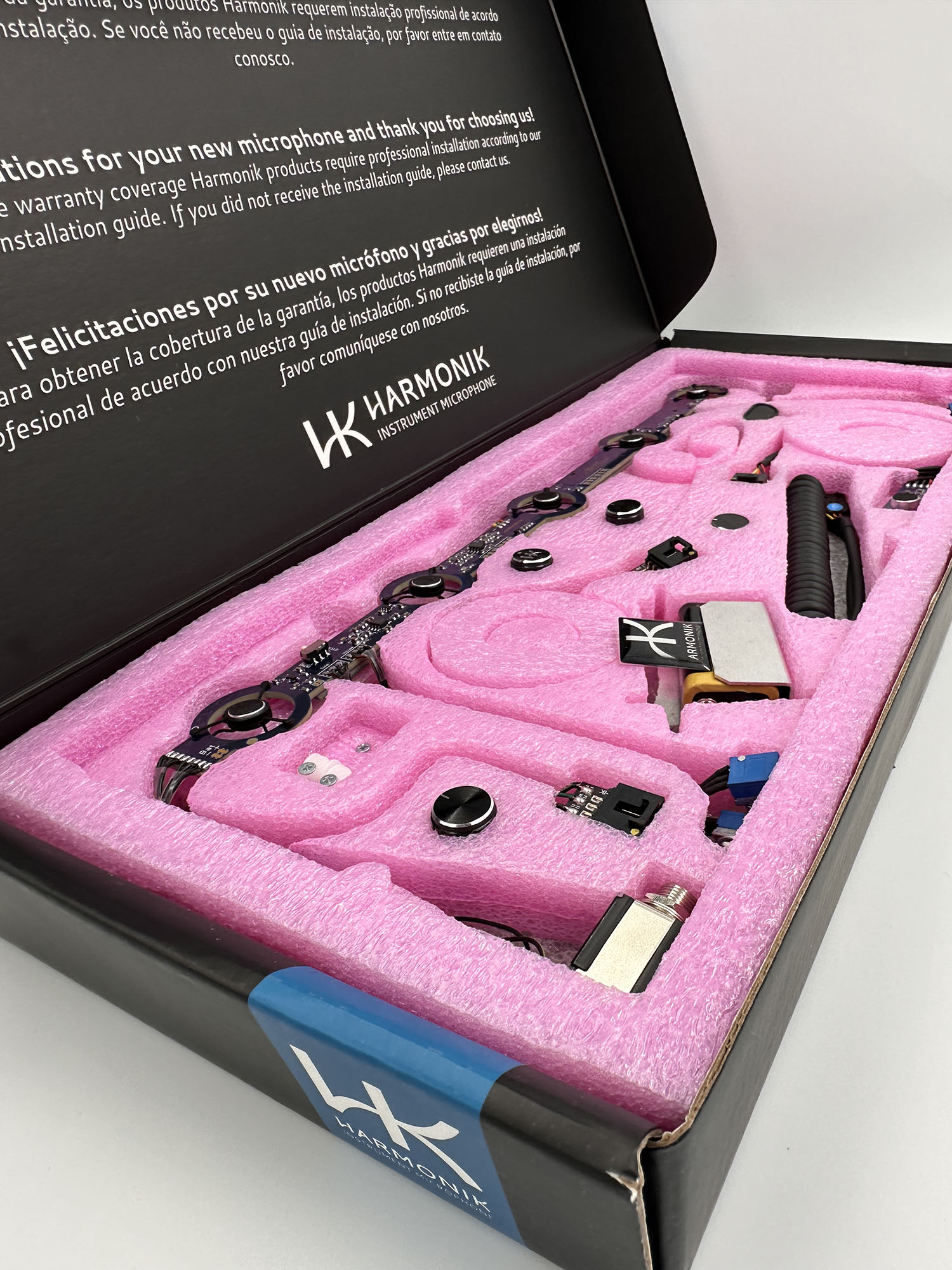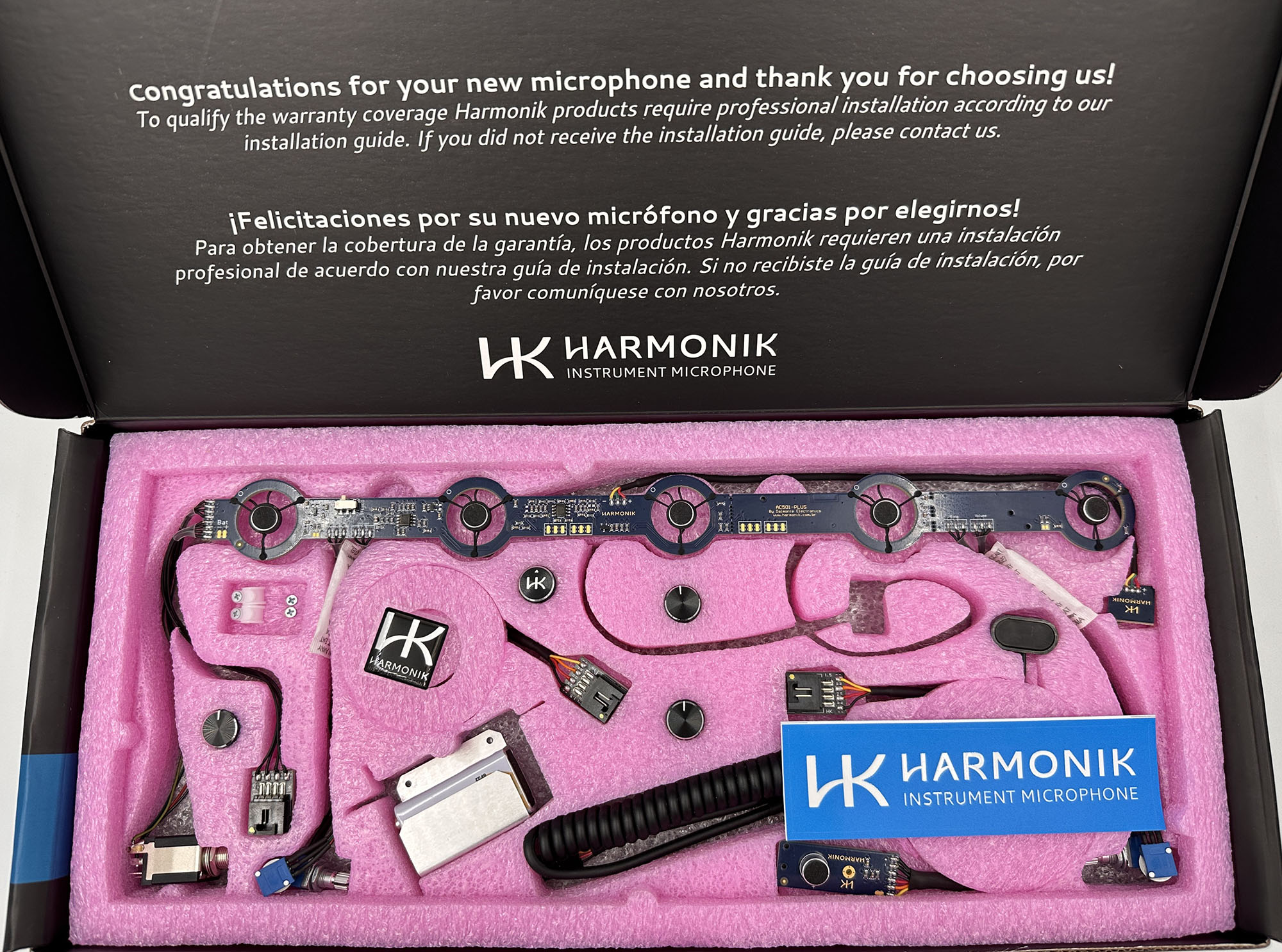 Preocupada com a facilidade na instalação, a AC501-PLUS acompanha cabos e adaptadores de fácil manuseio, alem do seu layout intuitivo. Nos sistemas da Harmonik não é necessário abafar a tampa do acordeon, preservando o som acústico do instrumento.