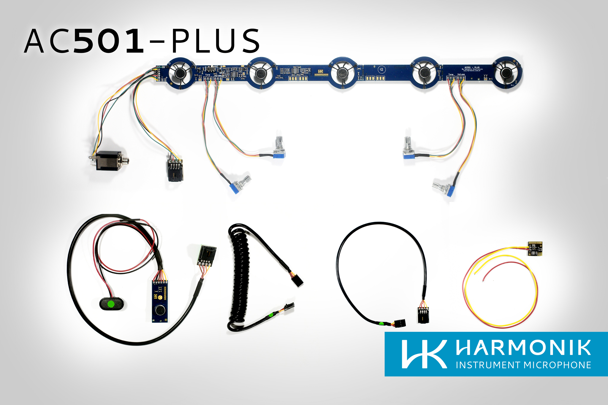 AC501-PLUS é um sistema de microfones de uso profissional para acordeon que apresenta uma excelente relação custo/beneficio, pois une toda a tecnologia e inovação desenvolvida pela HARMONIK® com microfones de alta qualidade incorporando os recursos de controle de tonalidade (Grave e Agudo) individual para os baixos e teclado, permitindo que o acordeonista ajuste o timbre do acordeon conforme o seu gosto, e chave Mono –Stereo possibilitando ao acordeonista facilmente trocar o modo da saída do jack P10 de stereo para mono e vice- versa, proporcionando mais recurso e flexibilidade no palco e no estúdio.