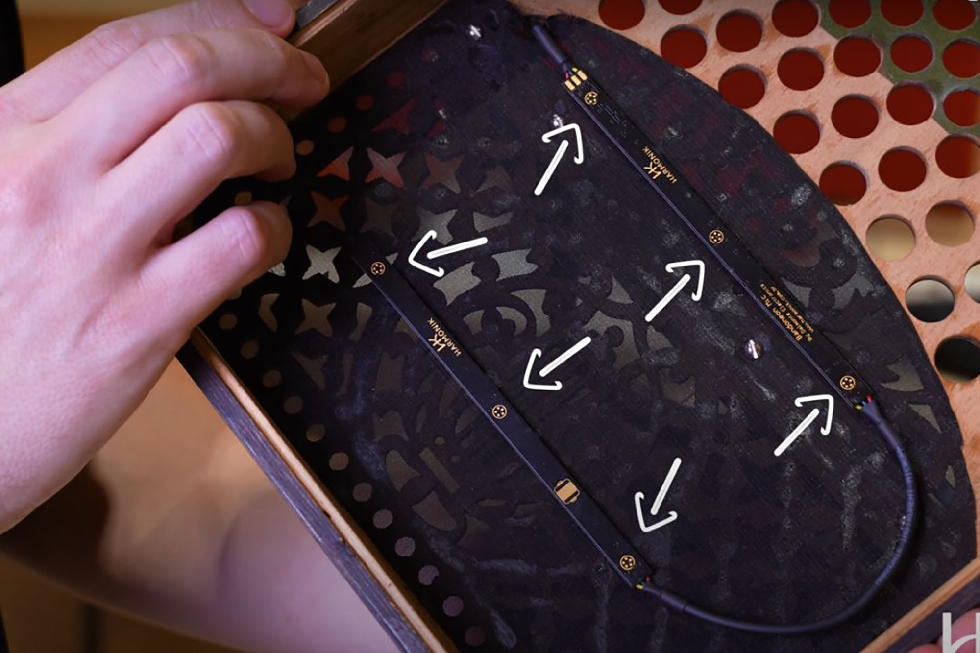 Possui 6 microfones para cada lado do instrumento, distribuídos em duas linhas para obter uma captação homogênea e potente.